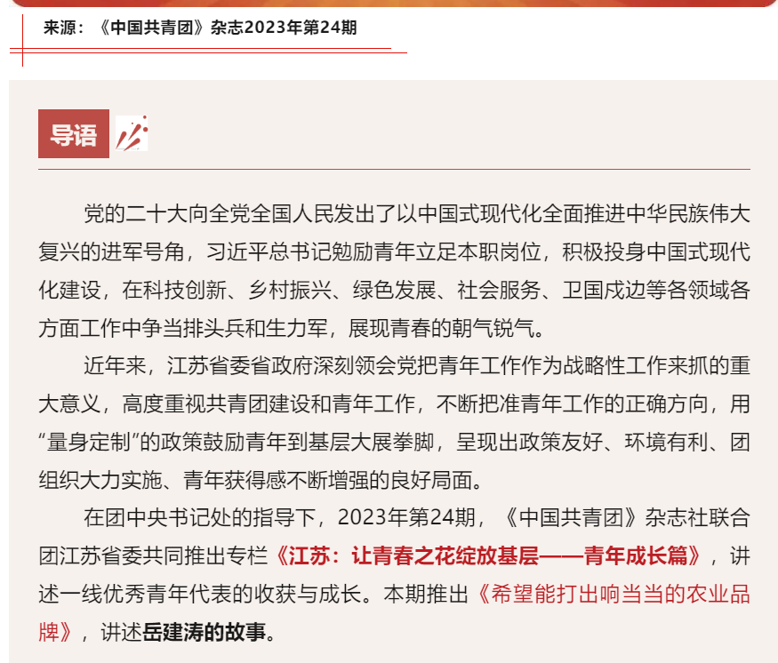 《中国共青团》杂志推出《希望能打出响当当的农业品牌》,讲述伟德官网毕业生岳建涛的故事。