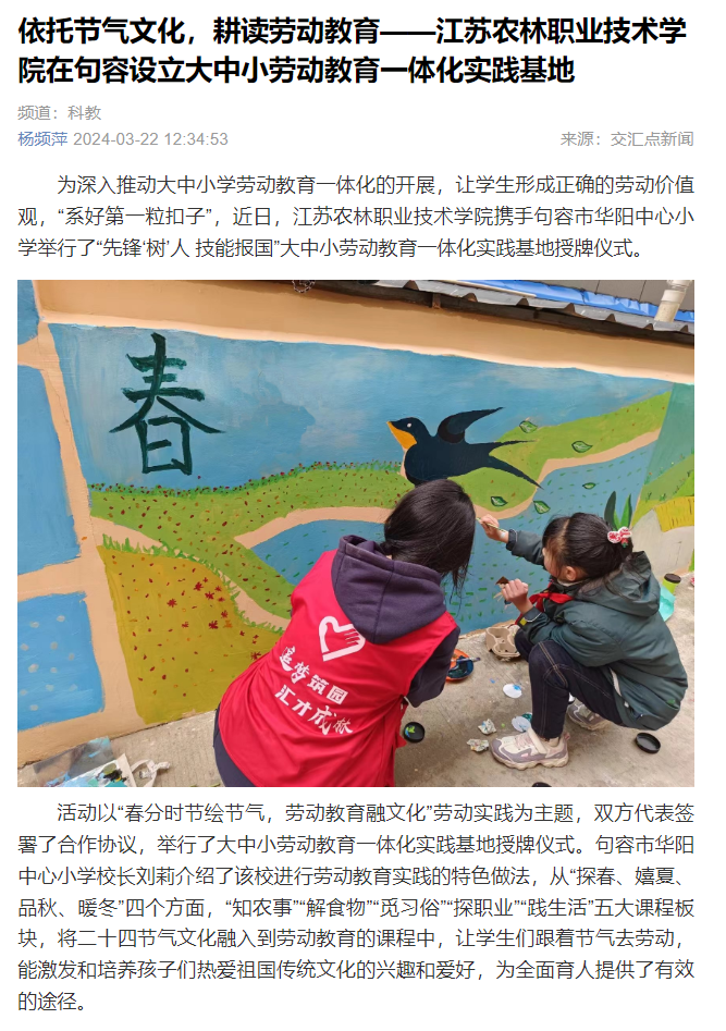 报道链接:依托节气文化,耕读劳动教育——BV伟德官方网站在句容设立大中小劳动教育一体化实践基地 (xhby.net)