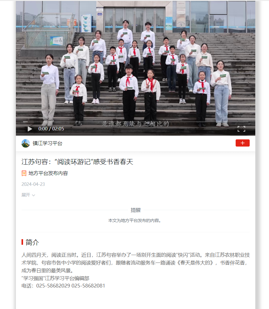 报道链接:https://article.xuexi.cn/articles/index.html?art_id=16893929311444798780&item_id=16893929311444798780&cdn=https%3A%2F%2Fregion-jiangsu-resource&t=1713865585179&study_style_id=video_default&showmenu=false&ref_read_id=ecac7151-72e0-4117-9dd6-60af60aa2272_1713866908419&pid=&ptype=-1&share_to=wx_single&source=share