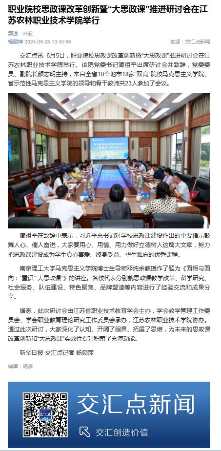新闻链接:职业院校思政课改革创新暨“大思政课”推进研讨会在BV伟德官方网站举行