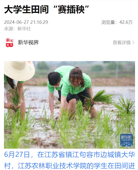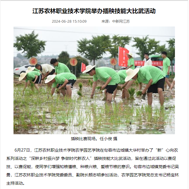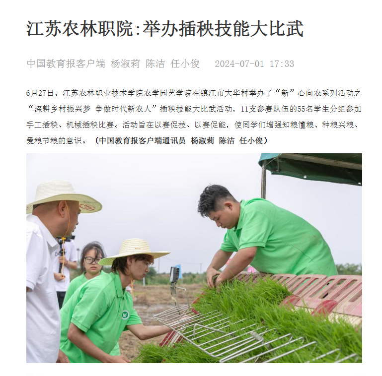 【中国教育报】等媒体报道伟德官网“深耕乡村振兴梦 争做时代新农人”插秧技能大比武活动。