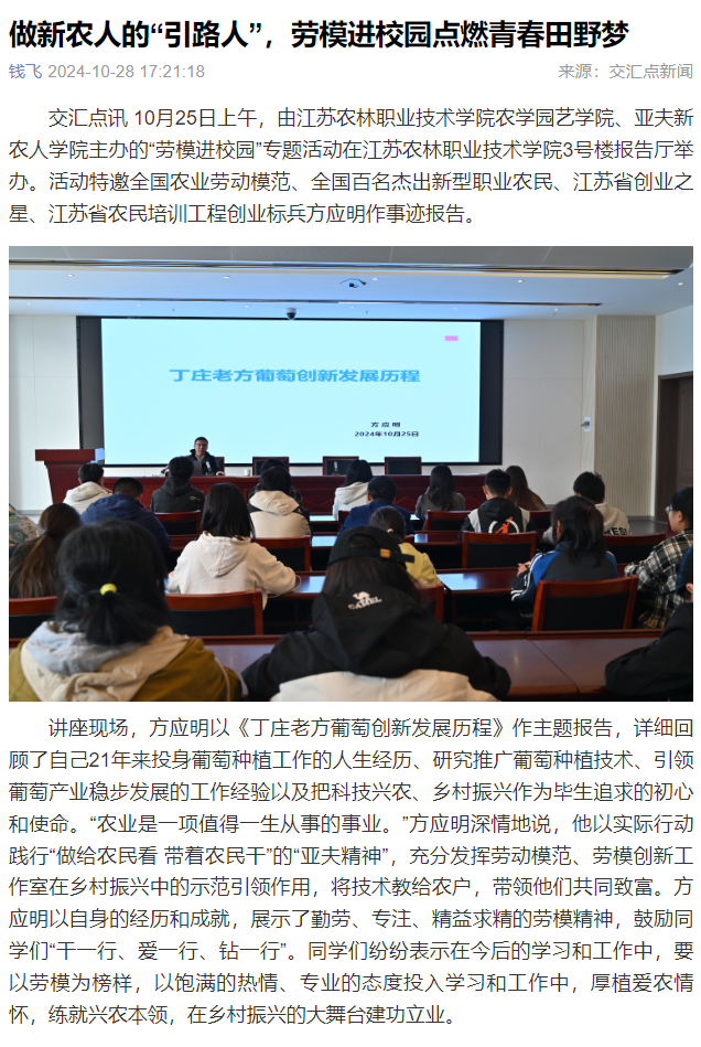 【交汇点】报道伟德官网“劳模进校园”专题活动。