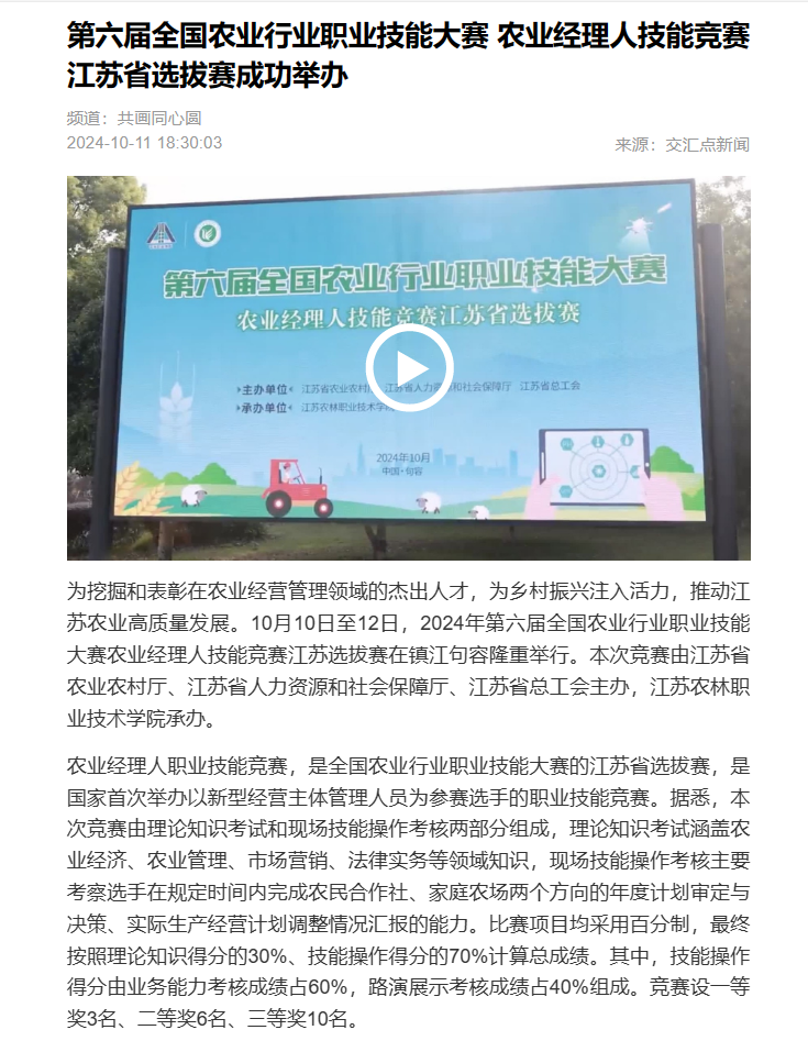 上一条:【中国新闻网】报道江苏农博园打造多彩研学活动 夯实发挥实践育人功能