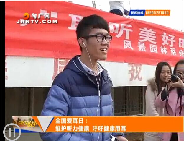 在第十七个全国爱耳日到来之际,风景园林系分团委为宣传安全用耳知识,提高同学们的听力保护意识,于3月2日下午在北校区田径场开展了“关爱耳朵·聆听美好时光”主题活动。句容电视台对此进行了报道。 链接地址:http://www.jrntv.com/vod/folder151/2016-03-04/40542.html