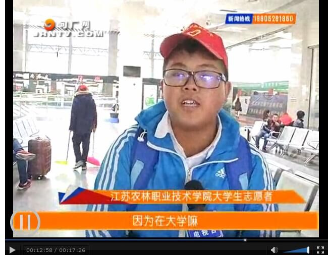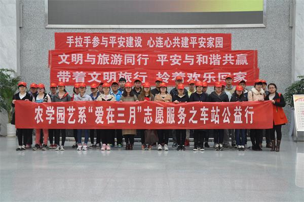 三月是雷锋月,为了弘扬好人精神,农学园艺系分团委带领爱心志愿者协会的同学们到句容市长途客运站开展了“爱在三月”的志愿服务,大家用自己的辛勤劳动为车站换上“新颜”,用小红帽的精神点亮了大学生的良好形象,赢得了在场工作人员及过往游客们的赞扬和好评。句容电视台对此次活动进行了报道。 链接:http://www.jrntv.com/vod/folder151/2016-03-23/41728.html