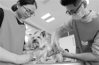 图为BV伟德官方网站畜牧兽医学院动物教学医院学生在给宠物做美容。(通讯员 郭海红 本报记者 张学军 摄影报道)