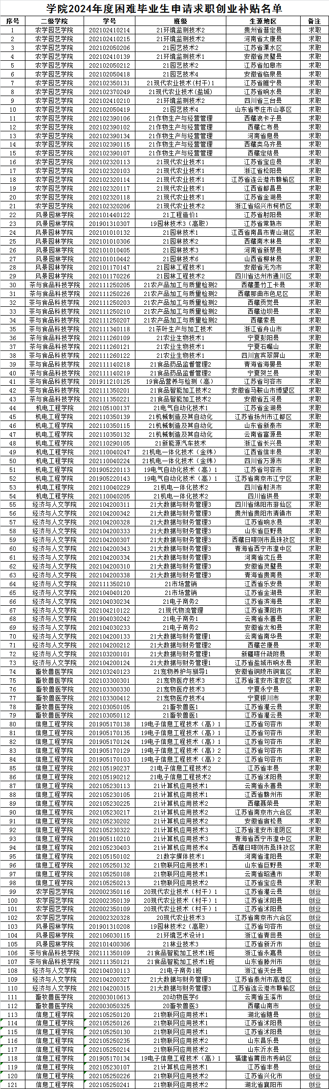 如对以下同学获得求职创业补贴有异议,请于2024年6月8日前到就业指导中心董老师处反映。地点:综合楼二楼东205室就业创业指导中心;联系电话:0511-87290222。